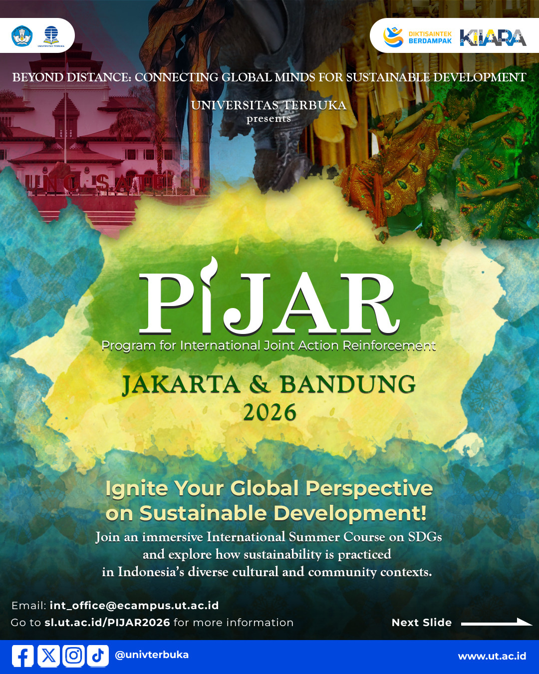 The School of Distance Education (SDE), Universiti Sains Malaysia, is pleased to invite Science Program students to participate in PIJAR 2026 (Program for Innovation and Joint Action for Resilience), to be held from 2–9 June 2026 and hosted by Universitas Terbuka (UT), Indonesia.